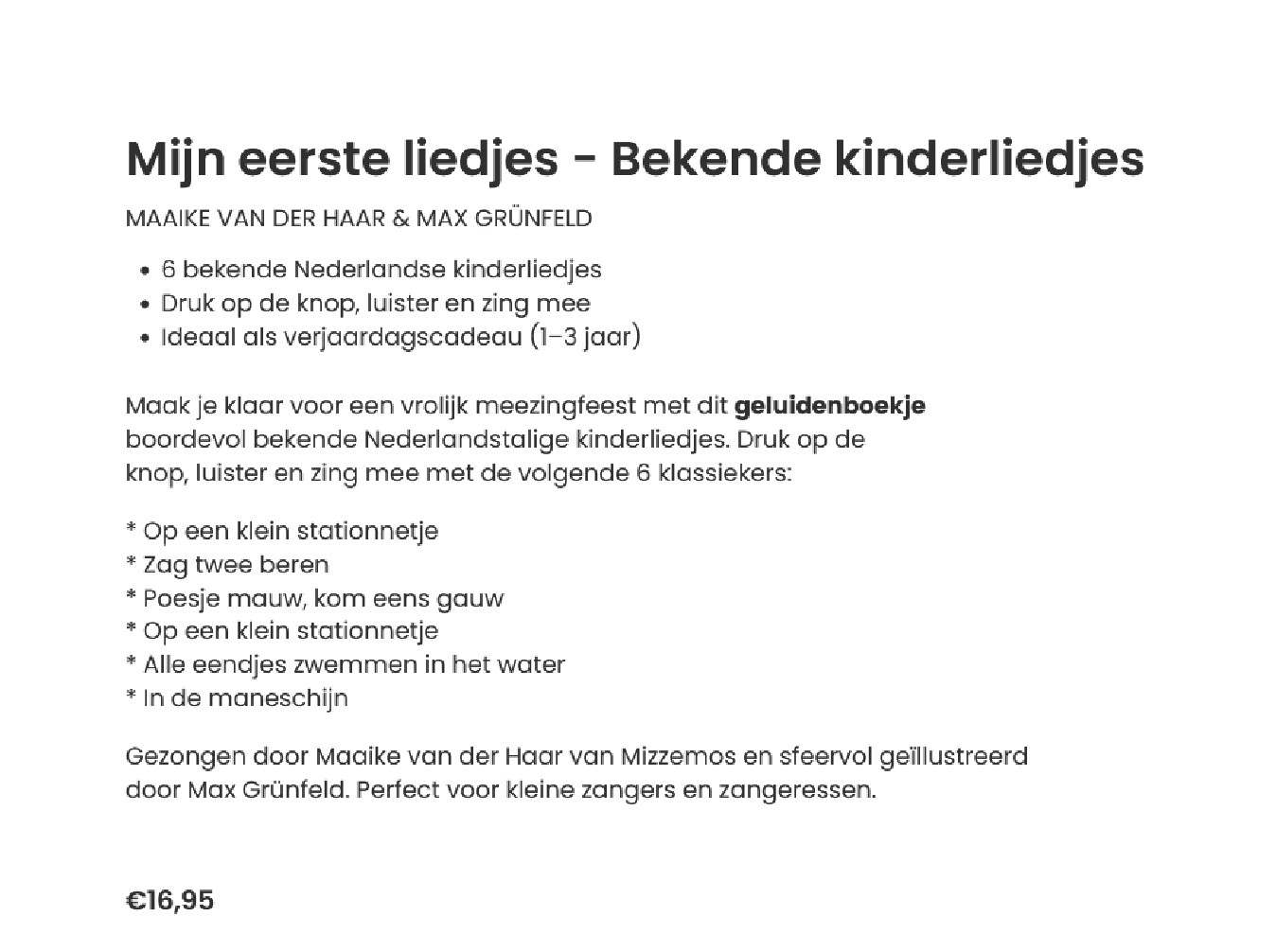 De liedjes en verhalen zijn geïnspireerd door het leven met en van haar kinderen en hun onuitputtelijke fantasie. Maaike vertaalt de belevingswereld van peuters en kleuters naar prikkelarme muziek, met oog en oor voor details. De liedjes gaan over alledaagse dingen, over emoties (die er allemaal mogen zijn), de natuur, en bevat elementen van verbindend ouderschap.